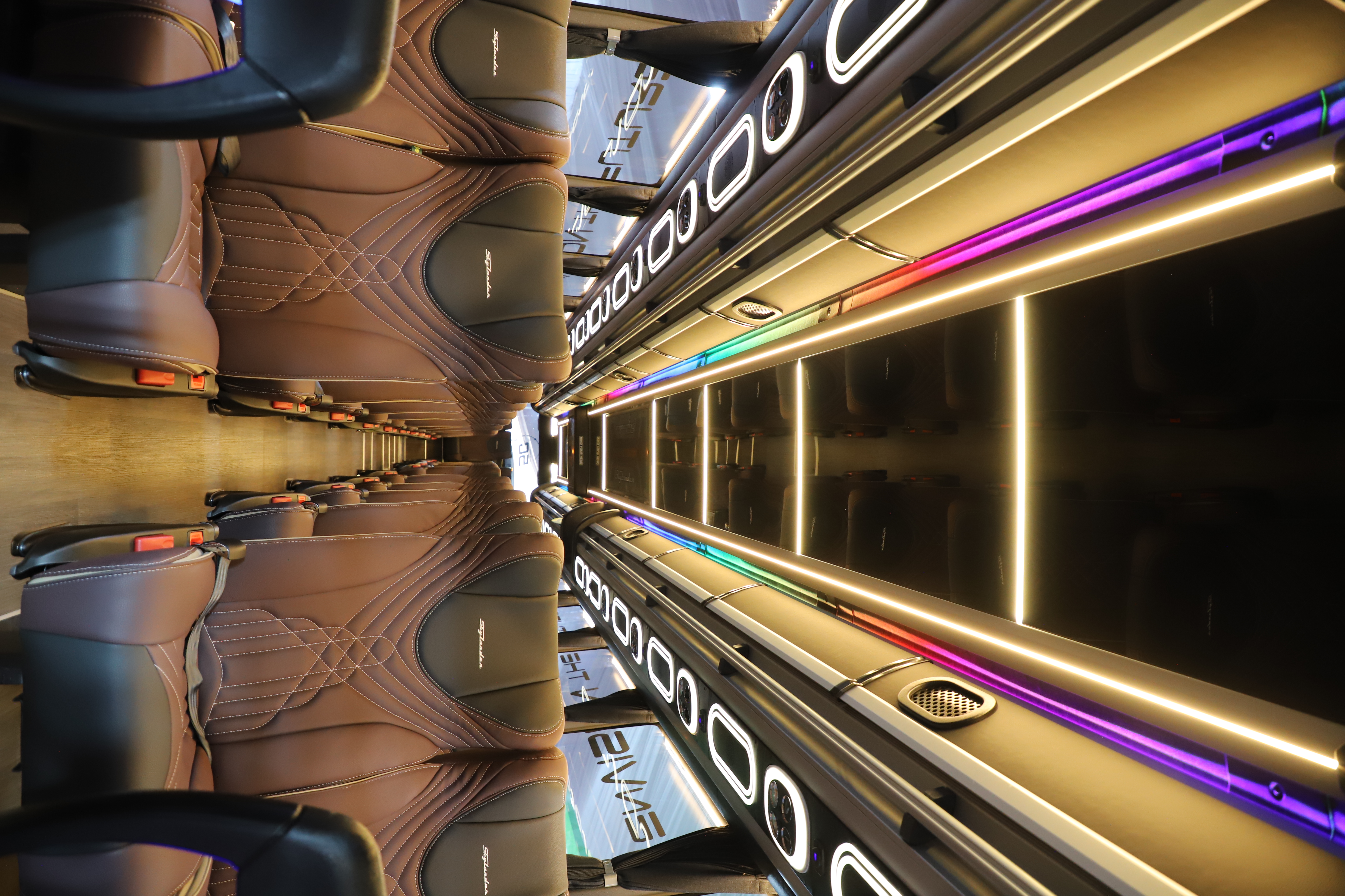 The aerodynamic body shape with minimalist garnish gives an elegant impression. The addition of a spoiler on the upper rear of the Skylander R25 makes the bus look sporty. From the interior side, the Skylander R25 comes with a new ceiling design featuring a skylight and lightshade.